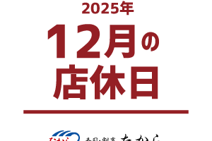 【12月の店休日】 ・ 1日(月)・ 2日(火) ・ 8日(月)・ 9…